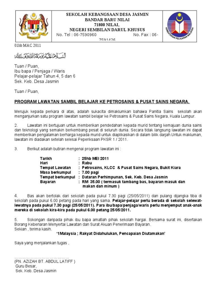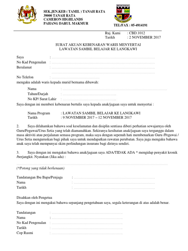 Surat Kebenaran Ibu Bapa Lawatan Sambil Belajar Pdf