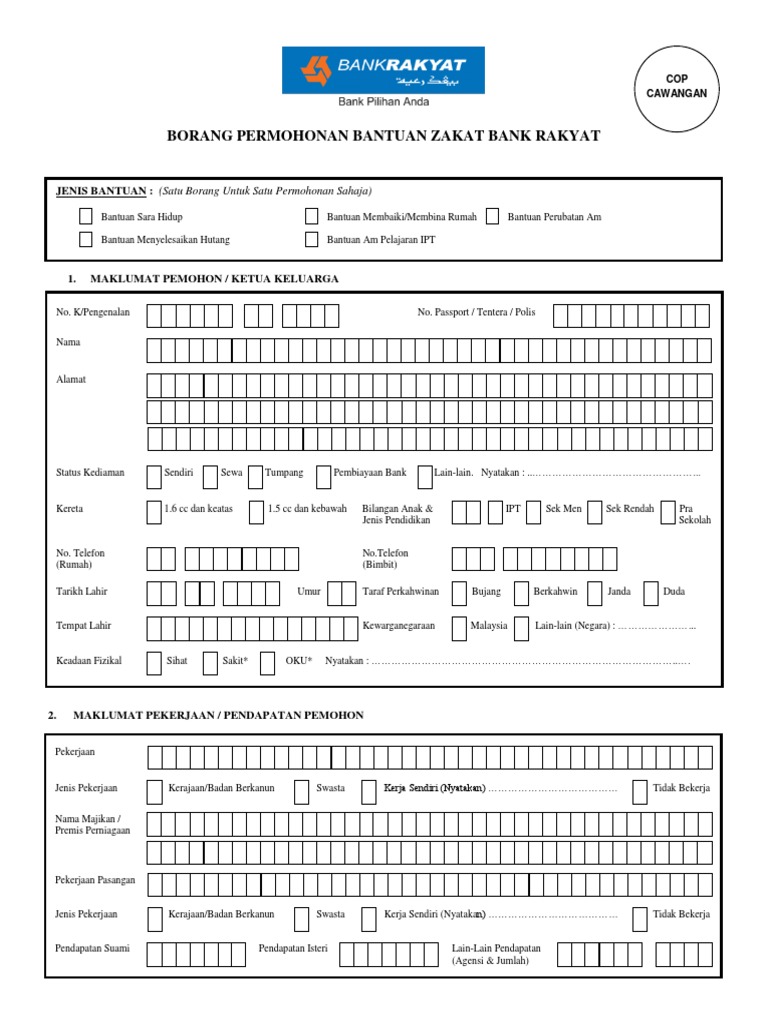 Borang Bantuan Zakat Bank Rakyat Pdf Pdf